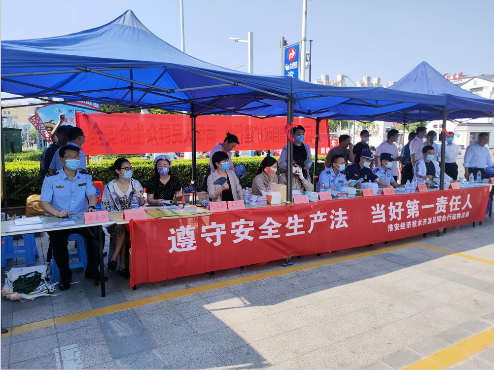 6月16日上午,经开区安委会办公室组织经济发展、住建、社会事业、综合执法、市场监管、公安、消防、钵池街道等部门和属地街办,在威海路大润发门前广场开展“6.16安全生产咨询日”活动。