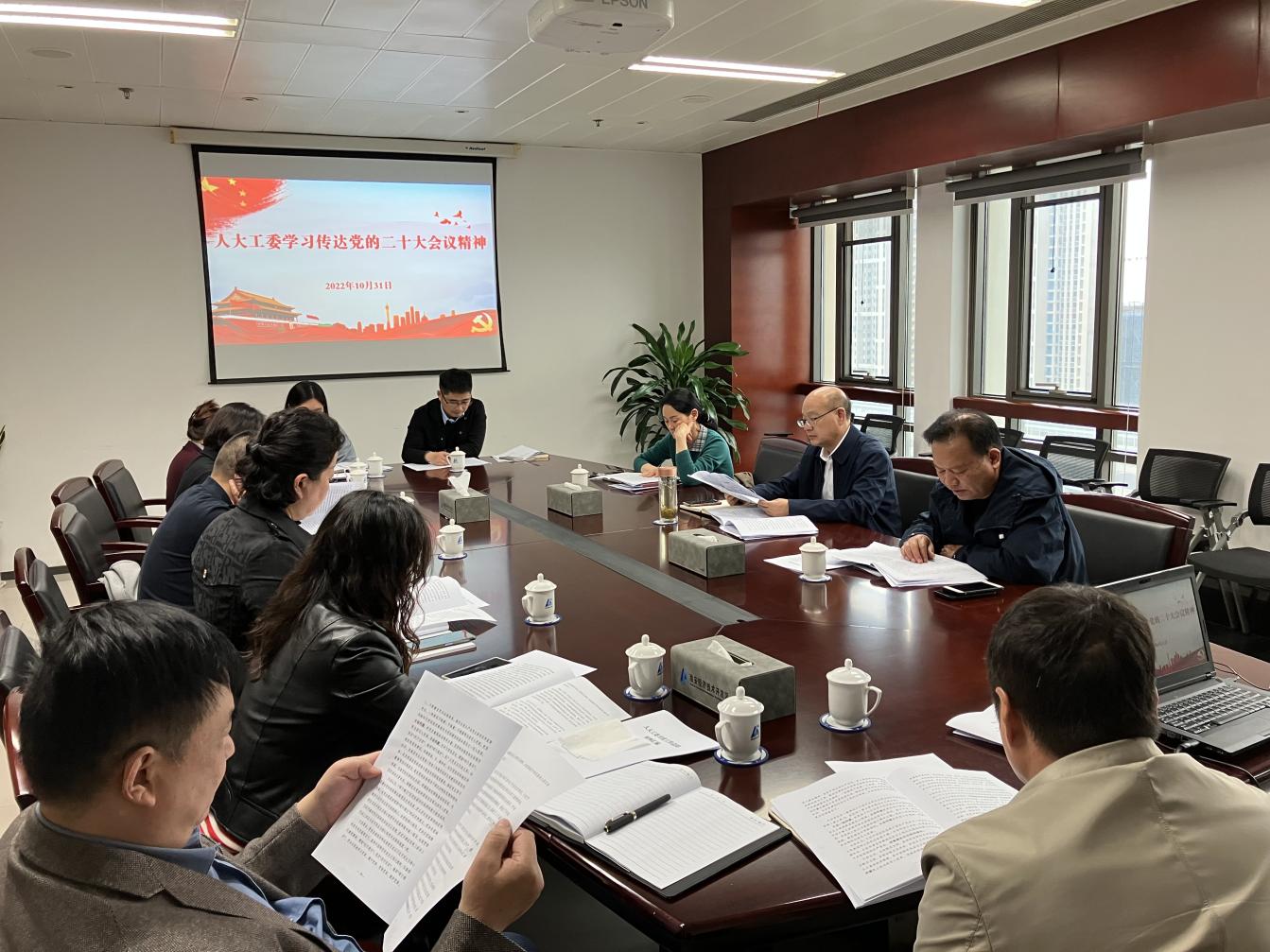 2022年10月31日下午,人大工委召开专题学习会议,全体人员集中学习党的二十大精神。会议由人大工委副主任马慧明领学《党的二十大精神传达提纲》,人大工委主任韩高峰作总结讲话。